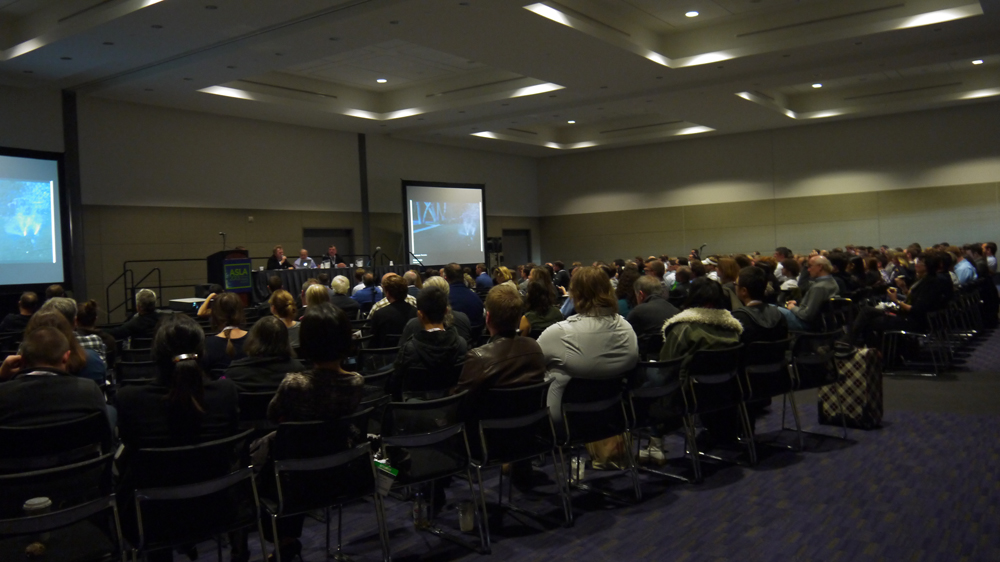 本次年会的主题是拥抱大地(Gaining Ground),大会邀请了世界最大的地理信息系统技术提供商ESRI的创始人兼总裁Jack Dangermond做了以地理设计(Geodesign)为主题的主旨演讲。Jack Dangermond介绍和演示了基于云计算、网络地图、实时数据、GPS等技术的发展趋势,及其对风景园林师保护自然、营造宜居城市、整合开放空间等方面的意义。另一场主旨演讲中,耶鲁大学的Stephen R. Kellert教授介绍了生态设计的重要性。