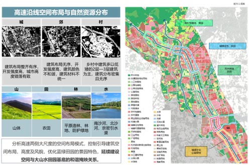 整体改造的内容分为点、线、面三级框架,节点空间以沿线建筑风貌及文化景观节点为主,线性空间以自然、田园景观及沿线植物景观形成的绿色风景廊道,面域空间以沿线乡村风貌整治为主。
